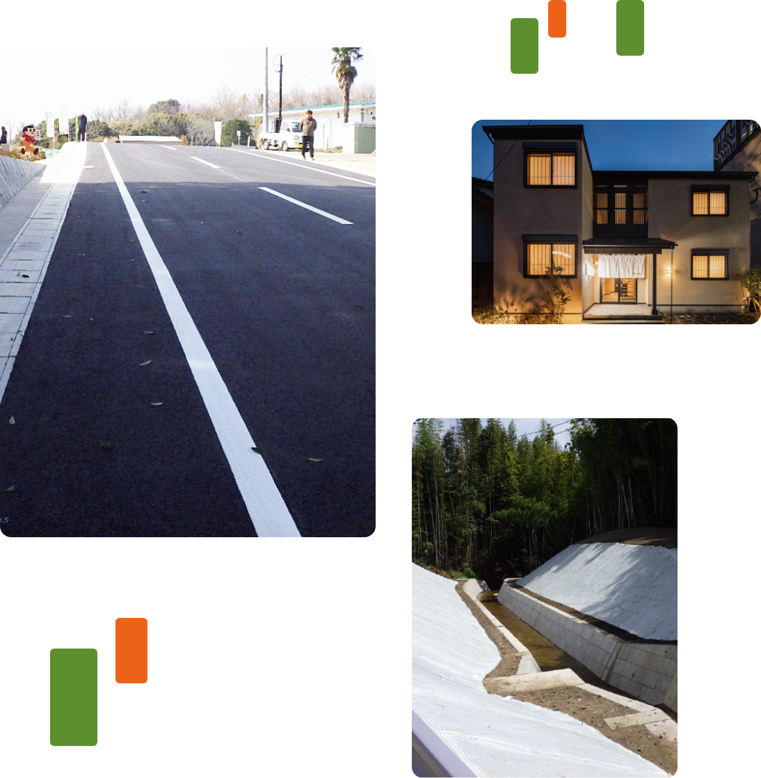 道路や上下水道などのインフラ整備から、人や物の流れ、土地の活用まで。自然との調和を意識し、ICT技術も取り入れながら、安全で質の高い環境づくりに取り組んでいます。これからも現場に向き合い、地域とともに歩み続けていきます。