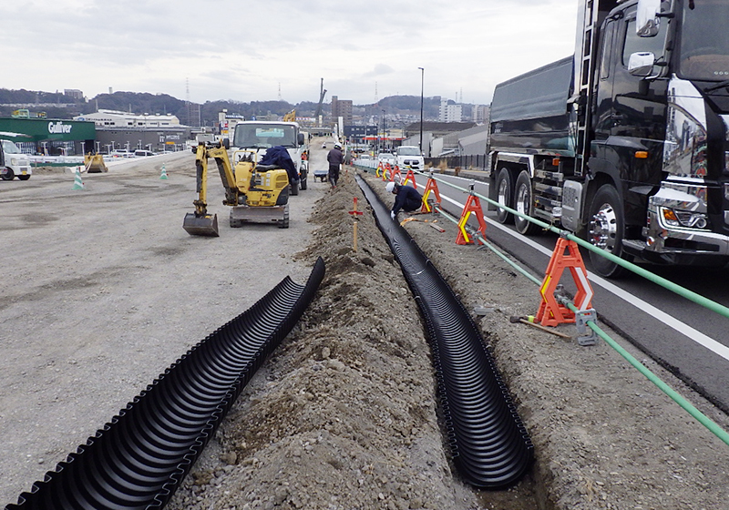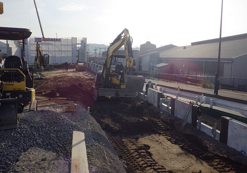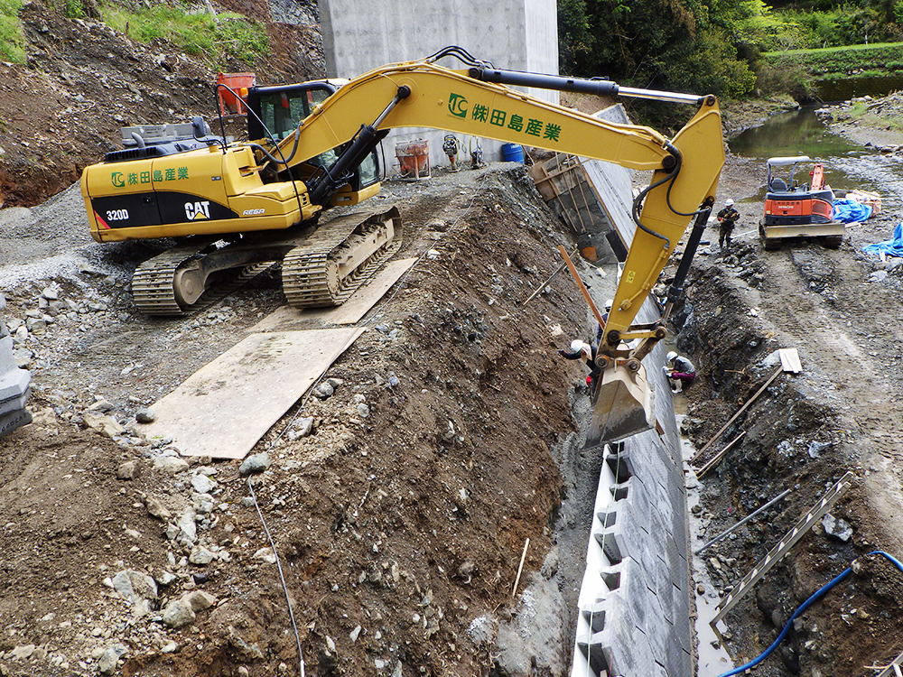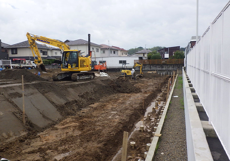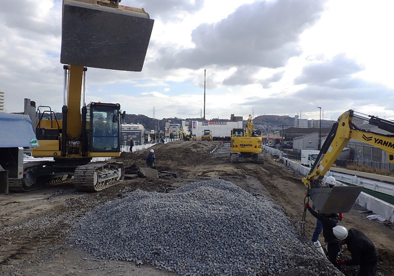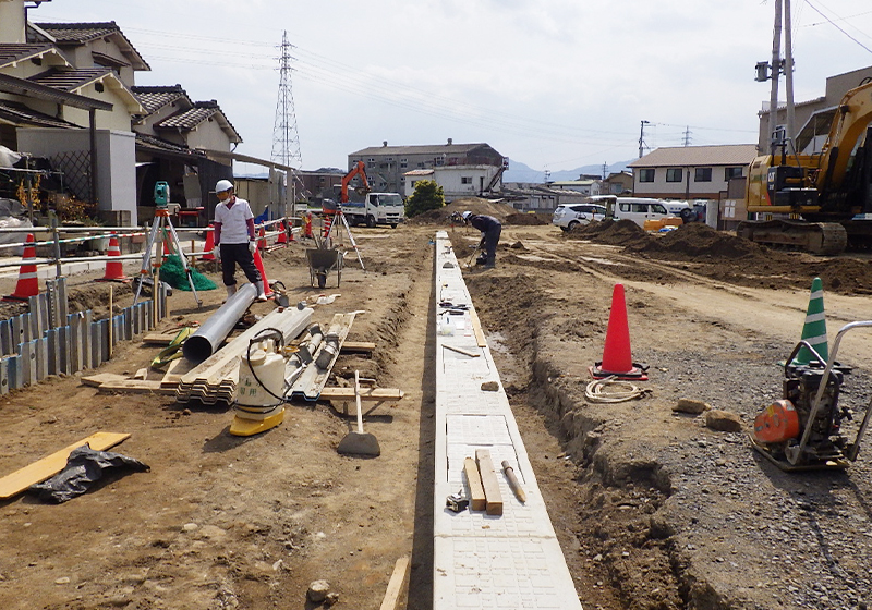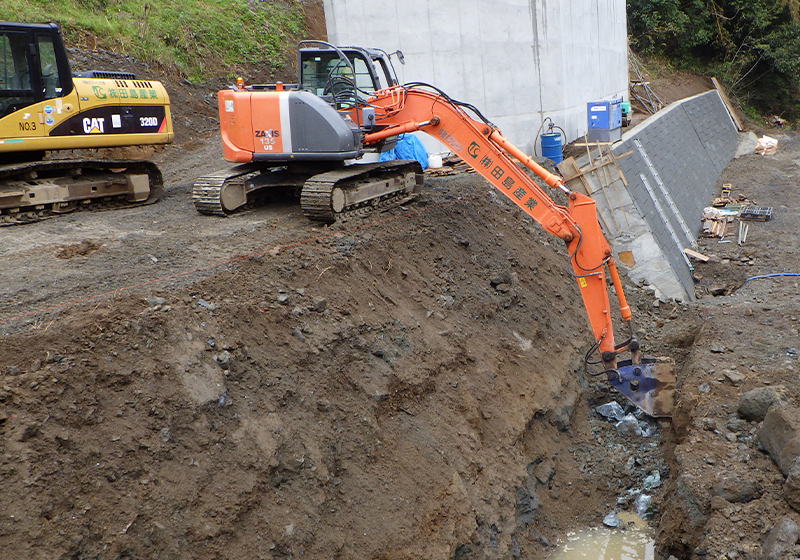 宅地の造成、高速道路・下水道整備などの土木工事、地山の掘削、整地に際しては、高度な技術を持つエキスパートの監督下で大型重機を投入。